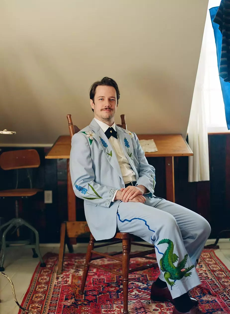Stand out from the crowd with this one-of-a-kind embroidered suit — where classic tailoring meets bold, custom design.